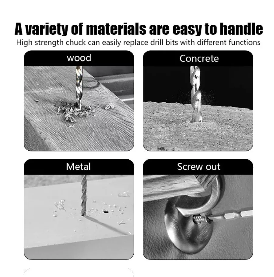 Sistema de troca rápida: facilita a substituição das brocas com praticidade, sem a necessidade de ferramentas adicionais.